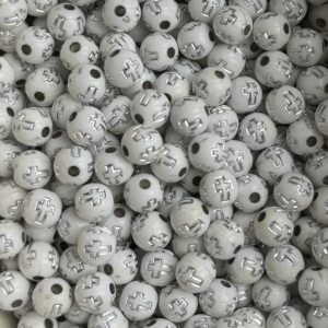 Acrylic round 8mm, white cross [50pcs]