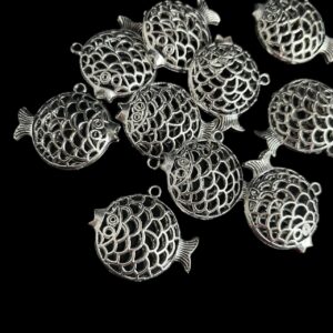Antiqued beads, fish 35mm [10pc] quantity