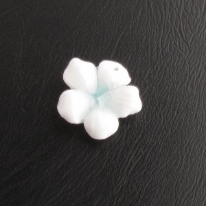 / Porcelain beads, flower pendant 24mm white/aqua green [1pc]