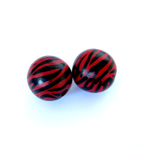 / Wood beads, round 24mm red/black zebra pattern [1 pair]