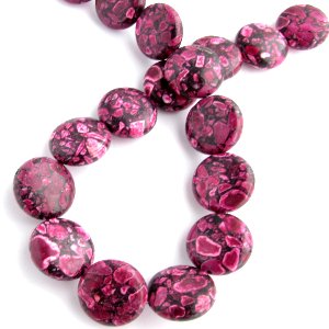 Kiinalainen turkoosi, litteä pyöreä 18x8mm Tumma fuksia [1 nauha määrä